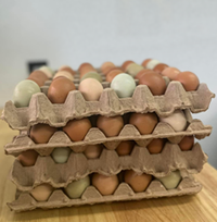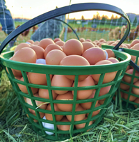 We have hundreds of free-range chickens that are never cooped up. They lay the largest, tastiest eggs you have ever had. We also sell duck eggs.